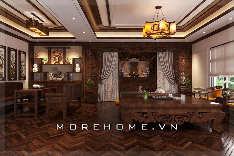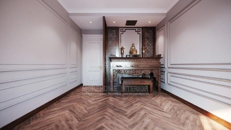 Với sự thành kính và hiểu biết về cách bố trí, Morehome giới thiệu cho quý vị mẫu thiết kế phòng thờ Phật Quan Âm hợp phong thủy trong dự án thiết kế nội thất biệt thự Vinhomes Imperia Hải Phòng.